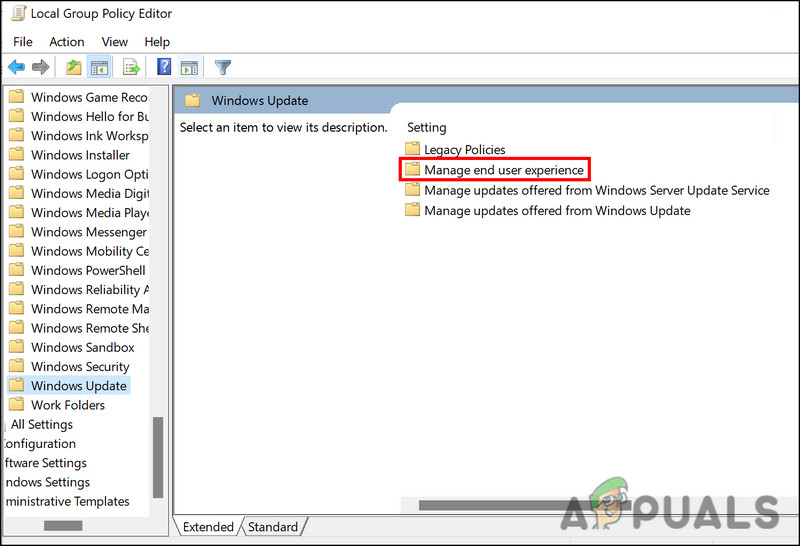 Computer Configuration > Administrative Templates > Windows Components > Windows Update > Manage end user experience