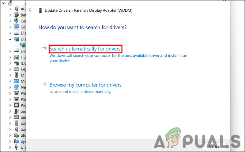 4. Now, click on Search automatically for drivers and wait for the Device manager utility to scan the system for drivers. Allow the utility to search the system for drivers