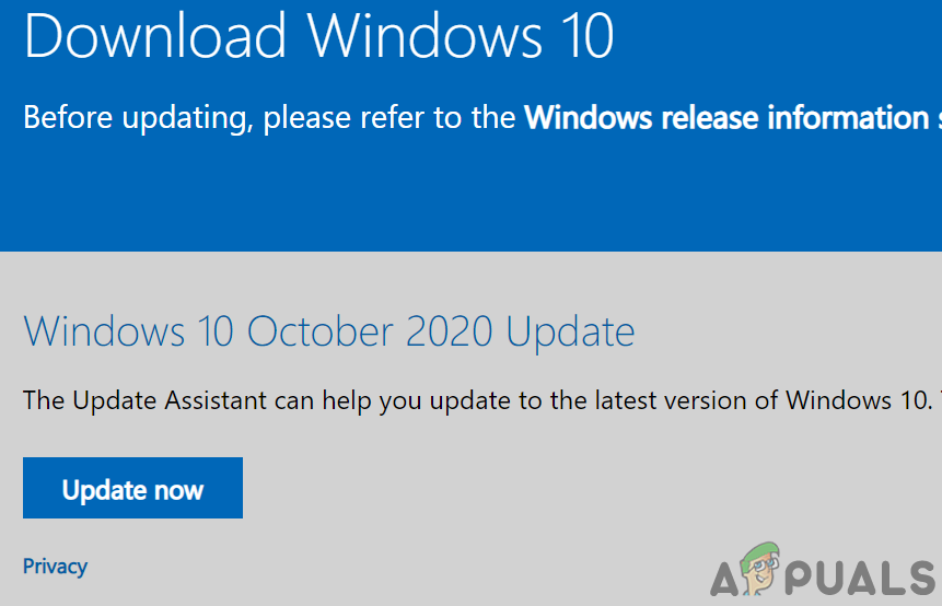 2. Now, click on the Update Now button (under the latest Windows Update) and then download the update. Download Windows Update Assistant