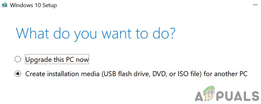 11. Then Accept the license terms and on the next screen, select the option of Create Installation Media (USB Flash Drive, DVD, or ISO File) for Another PC. Select Create Installation Media