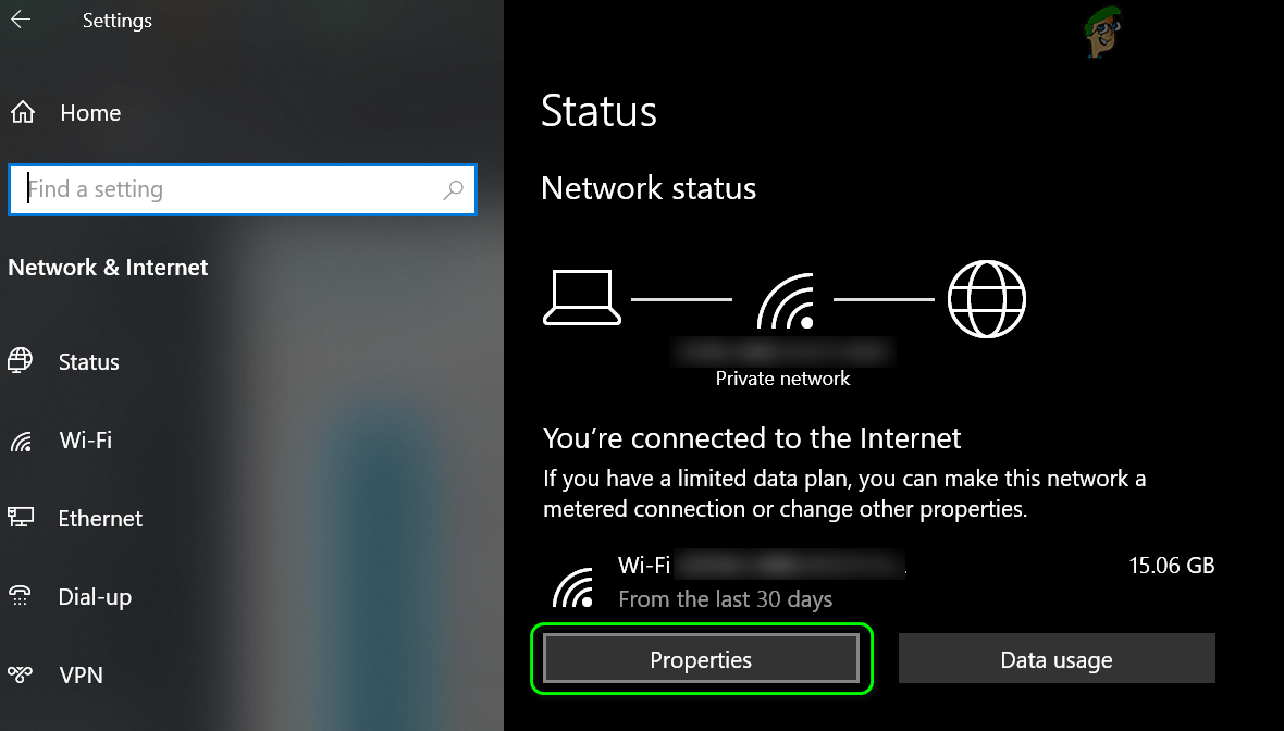 2. Open Network & Internet and then click on the Properties (under your network connection). Open Properties of Your Network Connection