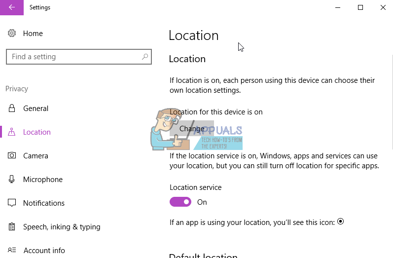 - Press the Windows key on your keyboard and type in Location, then open the Location privacy settings