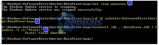copy %windir%\system32\esentutl.exe c:\fixedfiles\ c:\fixedfiles\esentutl.exe /r edb net start wuauserv