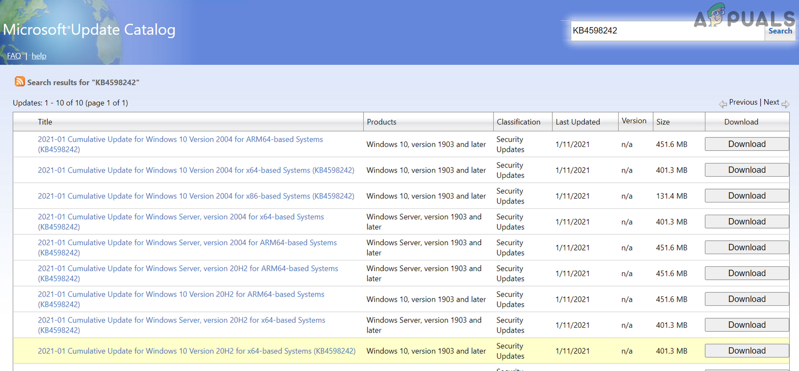 Download the Offline Installer of the KB4598242 Update - Now launch the downloaded update installer as administrator and follow the prompts to complete the setup process.