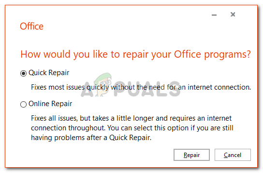 As we have mentioned above, the major cause of the error code is the corruption of your Microsoft Office installation. Such a problem can be easily be dealt with and there’s nothing to worry about. You will just have to repair the installation using the steps given down below: