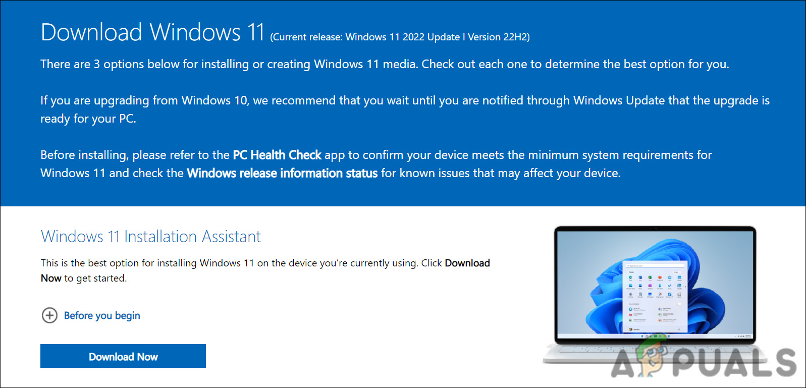 If you do not want to use the ISO file method, you can also use the installation assistant to install the 22H2 update.