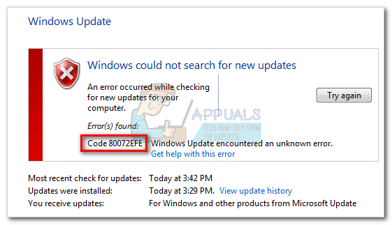 The 80072EFE error is primarily a Windows Vista and Windows 7 issue. However, it is also known to appear on Windows 10 (often caused by malware belonging to the rootkit family). If you follow the original documentation, the error code hints towards a connection interruption. This can mean a flaky line or a cable interruption, but it can also be a red flag that a malicious rootkit is interfering with your internet connection. This issue can also be caused by third-party firewalls or antivirus suites that are overly protective when overseeing your data exchanges. Another potential culprit is corruption in the Windows files responsible for updating your OS.