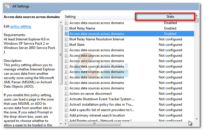 - Use the panel on the right side to identify the entries that are either Enabled or Disabled. You can make it easier for yourself by clicking the State button at the top of the column. This will sort the entries and help you spot modified policies more easily.