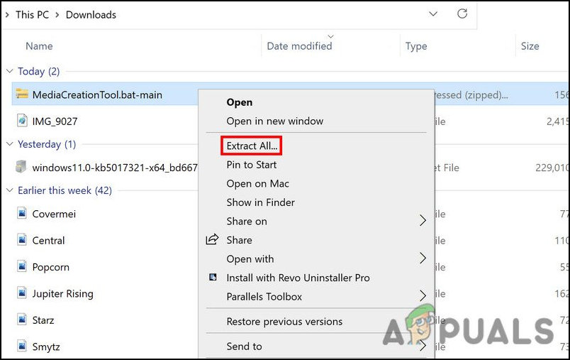 - Right-click on the downloaded file and choose Extract.