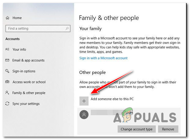 3. From the next menu, add someone else to this PC from the Family & other users menu on the Other users page. Add someone else to this PC