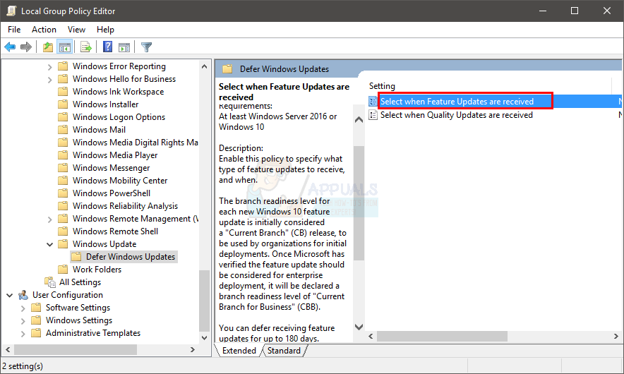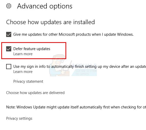 Since there are different categories of Windows 10 users, Microsoft released the Defer Windows Updates feature in its Windows 10. This feature is mainly designed for the people who aren’t willing take the risk of a new Windows update. If your Windows is on this feature, it will be on the Current branch for business. What this means is that you will get the updates later on, usually after a couple of months, when the updates are improved and bugs are fixed. This way, you have an option to delay the updates to minimize the risk of getting a Windows breaking bug. Keep in mind that this feature doesn’t delay all the updates. You will still get the Security updates as soon as they are released but the other updates will surely be delayed until they are matured.
