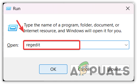2. Type regedit in the search box and click OK to open the registry editor. Opening Registry Editor