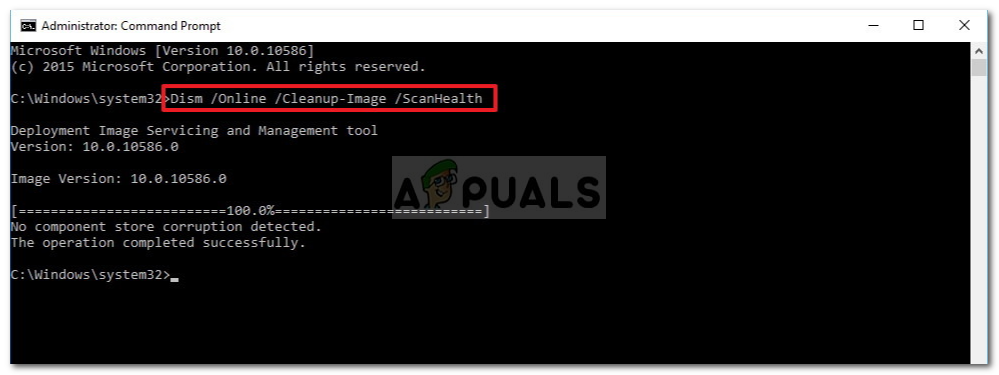 Note: Keep in mind that DISM ‘borrows’ a sub-component of Windows Update to download healthy equivalents for the corrupted system files that need to be replaced. Because of this, you need to ensure that you have a stable connection to the internet before deploying a DISM scan.