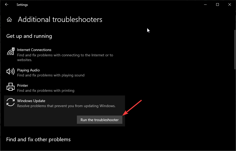 Run the Windows Update Troubleshooter - Choose Run the troubleshooter under Windows Update.