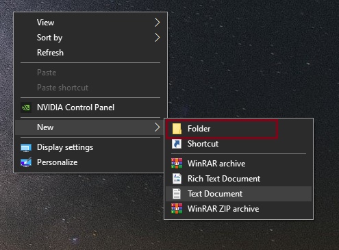 - Right-click on the Desktop, choose New, and click on Text Document.