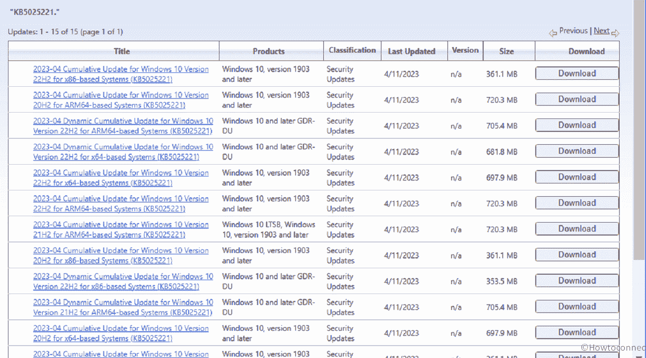 - Visit the Microsoft Update Catalog website and click on the download link that is compatible with your processor.