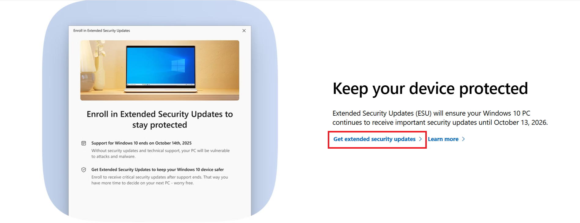 - Scroll down and click Get extended security updates.