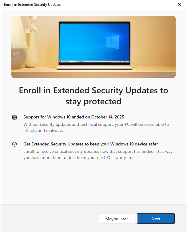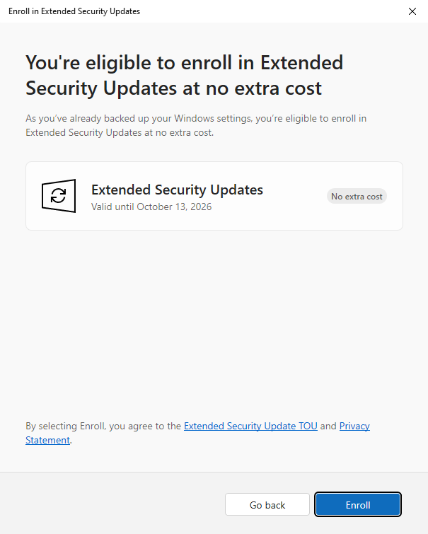To learn more about the ESU program and the eligibility criteria, refer to the official Microsoft ESU page for detailed information on how to enroll and ensure your system stays secure after official support ends.