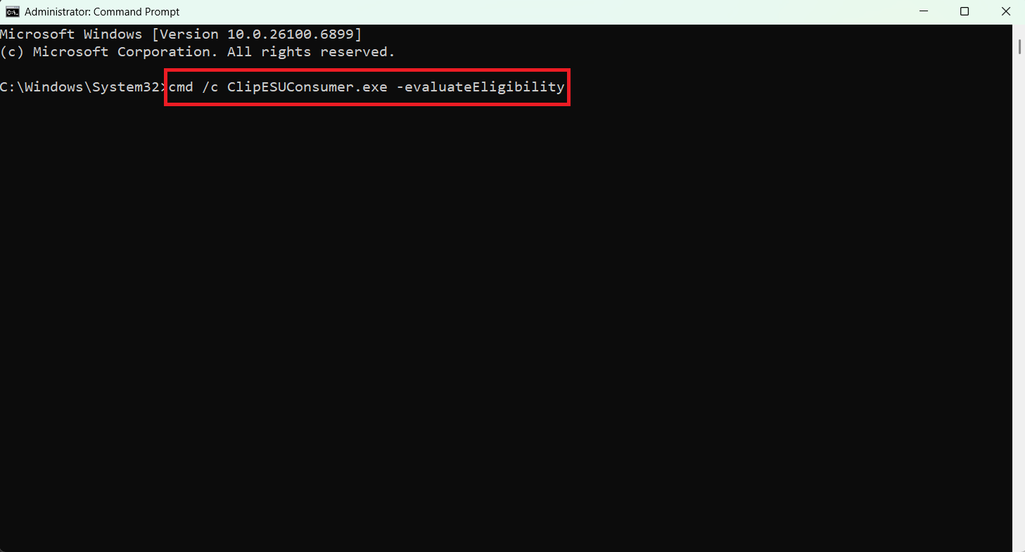 cmd /c ClipESUConsumer.exe -evaluateEligibility