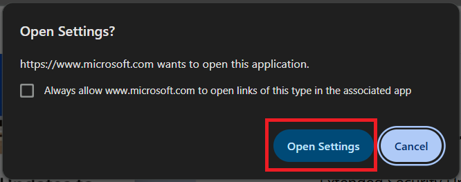 - Click Open Settings when the alert appears.