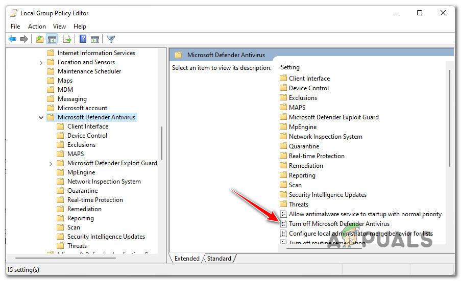 If you suspect that this scenario is applicable, follow the instructions below to use the Local Group Policy Editor to investigate whether the Microsoft Defender Antivirus policy is enabled or not: