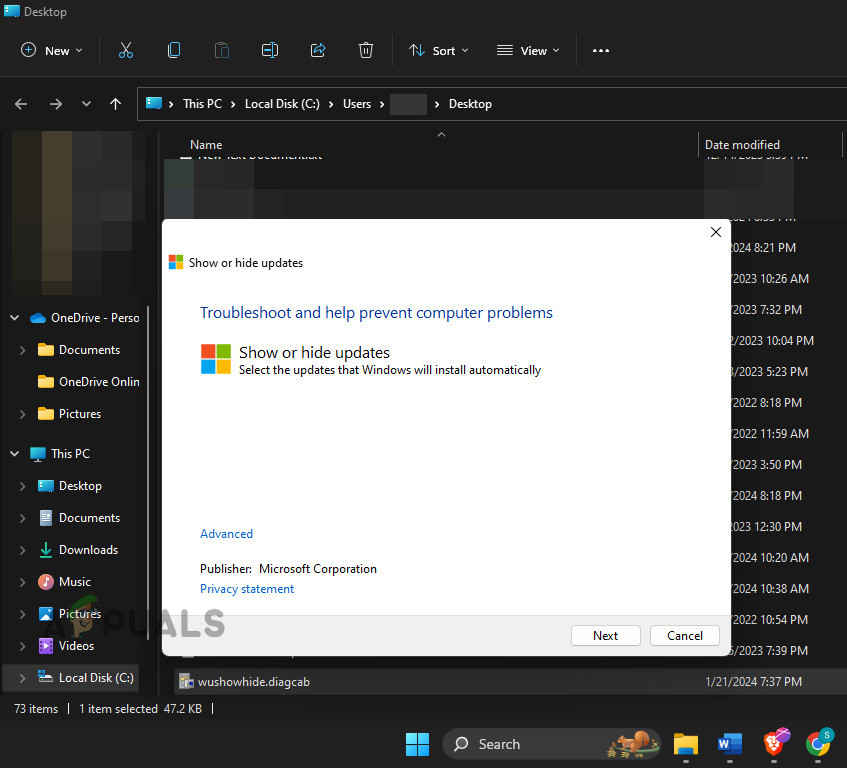 1. Download the wushowhide.diagcab utility from the official Microsoft website. Open the wushowhide.diagcab File and Click Next