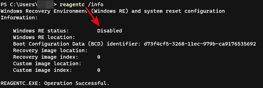 4. If the Recovery Partition was not initially present, enable it from the Command Prompt after booting: