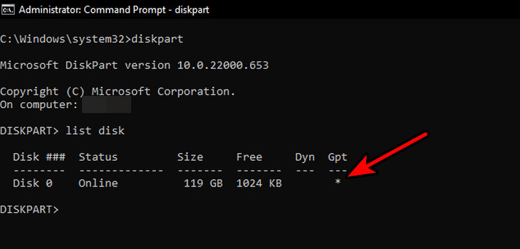15. Check if the disk uses GPT or MBR by listing the disks: