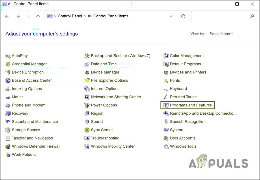 - In the following window, click on Programs and Features.