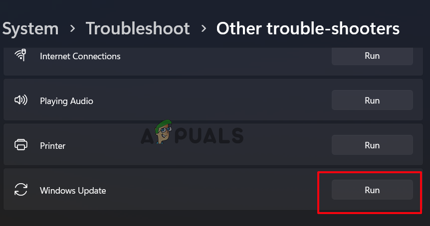 Click on the Other troubleshooters option - Now, locate the Windows Update troubleshooter and click on the Run button for it.