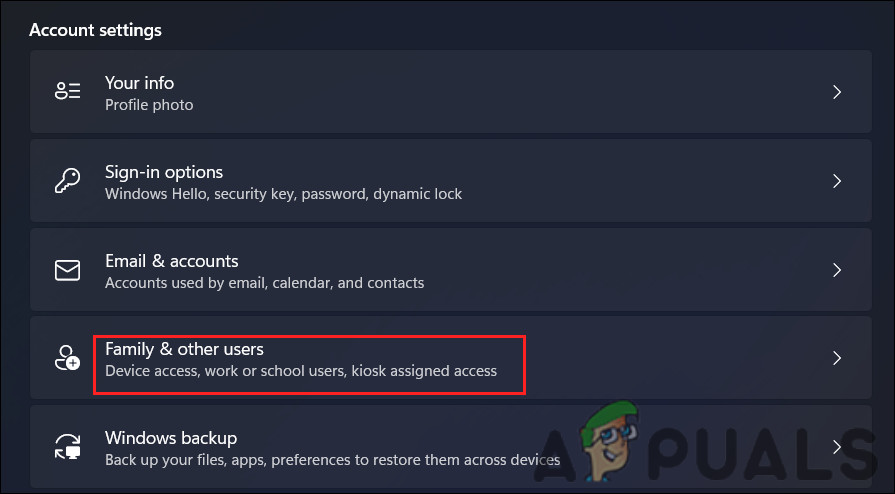 - Navigate to Family & other users.