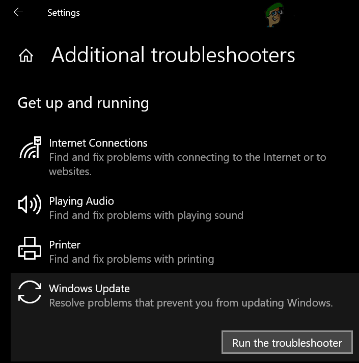 Open Additional Troubleshooters - Now, expand Windows Update (under Get Up and Running) and click on the button of Run the Troubleshooter.