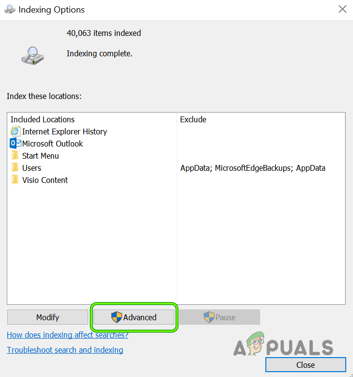 If this path is not set to its default setting on your system, then the updates may fail to install with the update error 0x800707e7 and the same can be fixed by setting the path of the Indexing Location of Your PC to the default.