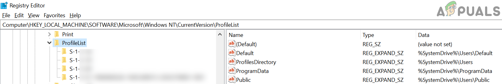 Computer\HKEY_LOCAL_MACHINE\SOFTWARE\Microsoft\Windows NT\CurrentVersion\ProfileList