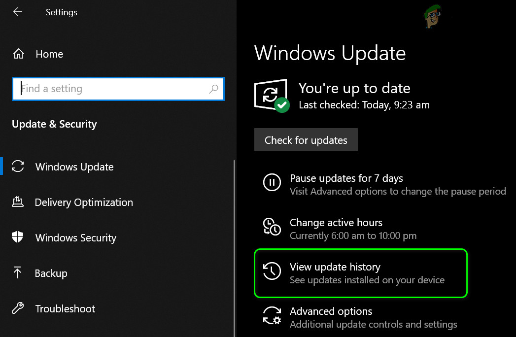 2. Now select Update & Security and in the next window, open View Update History (in the right pane). Open Update & Security