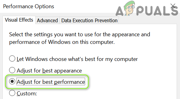 If you have set your PC to operate for the best appearance, then it can overburden your system and make it sluggish. In this scenario, setting the Visual Effects of Your PC to Best Performance may solve the problem.