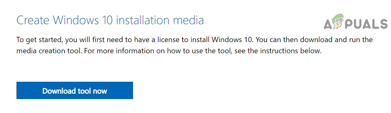 2. Now scroll down and under Create Windows 10 Installation Media, click on Download Tool Now. Download the Media Creation Tool from the Microsoft Website