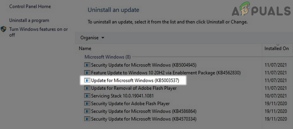 5. Upon restart, check if the system is working fine. Uninstall KB5003537 Update