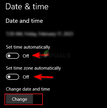 4. Turn off both Set time automatically and Set time zone automatically.