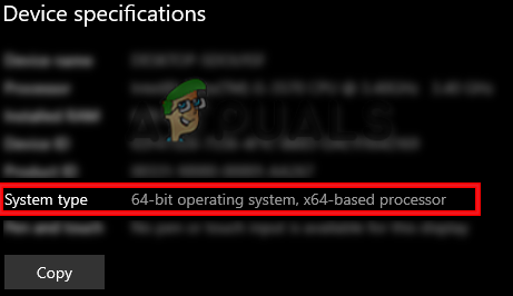 2. Go to System > About and check the System type under Device specifications (e.g., x64-based processor). Checking device specifications