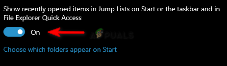 3. Toggle off Show recently opened items in Jump Lists on Start or the taskbar.