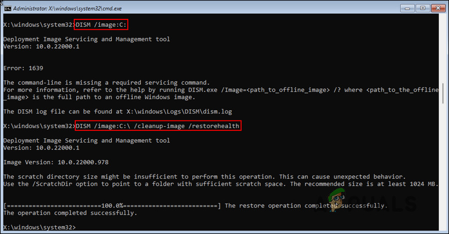 Once the SFC scan is finished, follow it up with a DISM scan with admin access without restarting your PC. DISM uses a component of Windows Update to obtain healthy replacements to replace corrupt system files. Because of this, you’ll need to ensure that you have a stable internet connection before beginning this operation.