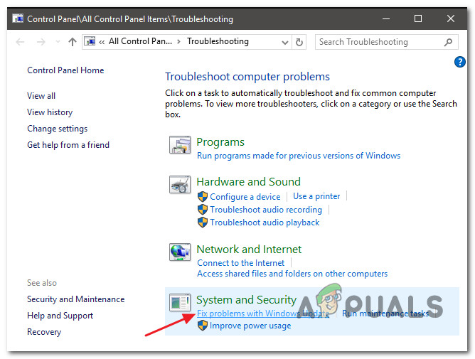 Open up the Troubleshooting tab - Under System and Security, click on Fix problems with Windows Update.