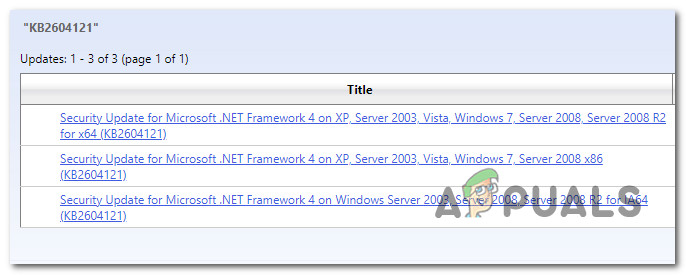 Note: You can grab the update code from the WU error message inside the Windows Update page.