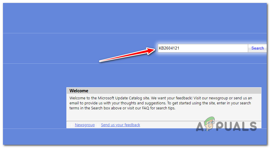 - Use the search box in the upper-right corner of the Microsoft Update Catalog page to discover the update that failed to install.