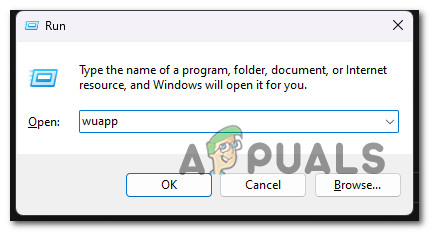 - Next, type ‘wuapp’ inside the text box of Run, then press Ctrl + Shift + Enter to open up an elevated Windows Update instance.