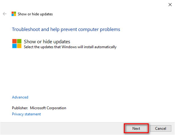 - Download the Official Windows “Show or hide updates” utility. Click > (here)