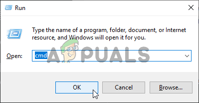 1. Open up a Run dialogue box by pressing Windows key + R. Once you’re inside the Run dialogue box, type ‘cmd’ inside the text box and press Ctrl + Shift + Enter to open up an elevated Command Prompt. Once you see the UAC (User Account Control), click Yes to grant admin access. Running Command Prompt as an administrator