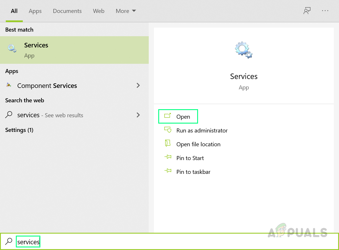 - Click Start, search Services, and open it. It will open the Windows Services Manager where all the services provided by the Windows operation system reside.