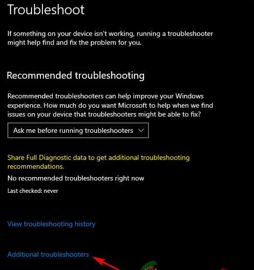 2. Click on Additional troubleshooters. Accessing the Additional Troubleshooters tab